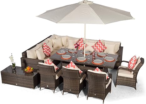 11+ 10 Seater Rattan Cube Outdoor Dining Set With Parasol Pictures